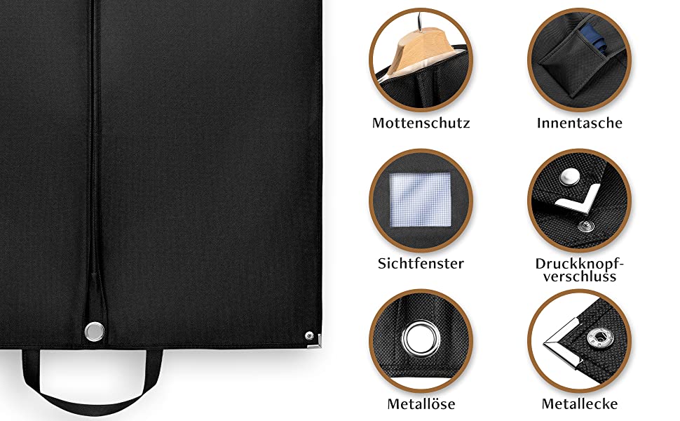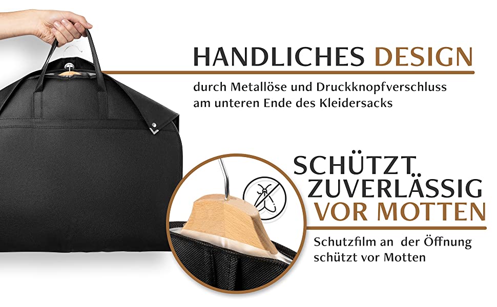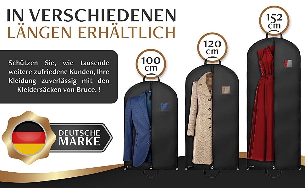 Astfel, hainele dvs. nu vor mai fi niciodată prăfuite, umede sau încrețite. Atât în deplasare, cât și în garderobă, pungile noastre pentru haine protejează în mod fiabil piesele dvs. scumpe împotriva deteriorării, ploii, moliilor și prafului.
