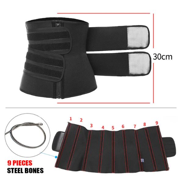Dispune de un fermoar și de două închideri cu scai reglabile și rezistente pentru a oferi un sprijin substanțial, îmbunătățind în același timp compresia în jurul zonei abdominale și a taliei.