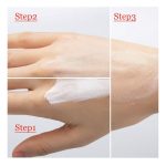 PASUL 2: Aplică o cantitate potrivită de fond de ten lichid pe dosul mâinii. Folosind o pensulă, un burete sau vârfurile degetelor, aplică ușor fondul de ten din centrul feței spre exterior pentru un aspect uniform și natural.