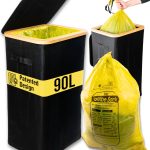 - CAPACITATE 90L: Dezvoltat special pentru sacii galbeni de 90 de litri, dar potrivit și pentru alți saci de gunoi de aceeași capacitate sau mai mari. Excelent pentru eliminarea completă a deșeurilor.