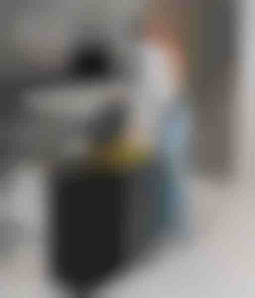 Acest model se mândrește cu cusături întărite, materiale durabile și o culoare neagră sofisticată din punct de vedere estetic, care se integrează perfect în orice spațiu – fie că este vorba despre un birou modern sau o bucătărie minimalistă. Designul său compact, dar spațios, permite reciclarea eficientă fără a ocupa prea mult spațiu. În plus, coșul de gunoi are un cadru din bambus cu un inel din fier de care este atașat sacul de gunoi, ceea ce îl face ușor de schimbat și de utilizat. Coșul de gunoi este proiectat pentru saci de gunoi de 90 l, dar puteți utiliza cu ușurință saci mai mari.