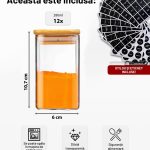 Setul nostru conține un total de 12 borcane de depozitare. Toate au un diametru de 6 cm și o înălțime de 10,7 cm, cu o capacitate de 280 ml. Acest lucru facilitează depozitarea și, în același timp, asigură o prezentare elegantă și uniformă.