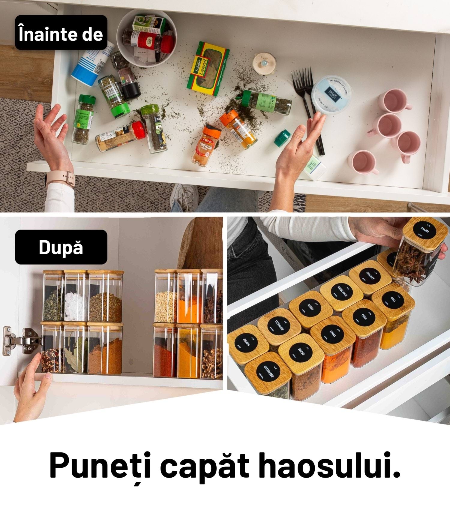 - CEA MAI BUNĂ ORGANIZARE – Păstrați-vă bucătăria ordonată cu borcanele noastre practice cu capac din bambus, fie pe tejghea, în dulap, în cămară sau în debara – găsiți ceea ce aveți nevoie dintr-o privire!