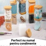 De acum încolo, depozitați-vă alimentele în aceste borcane de sticlă. Capacele etanșe din bambus cu garnituri de silicon asigură că conținutul rămâne proaspăt mai mult timp și că mirosurile rămân în interior.
