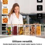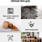 Capacele noastre au o garnitură care închide complet borcanele de depozitare pentru a păstra alimentele proaspete mai mult timp, împiedicând cu succes intrarea în sau ieșirea din borcane a mirosurilor intense.