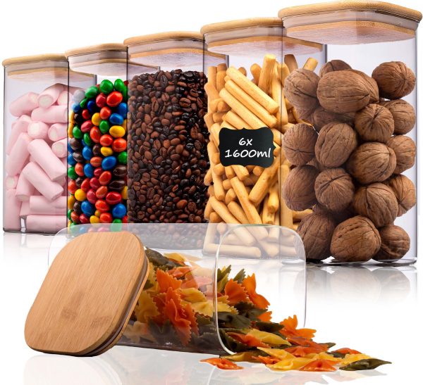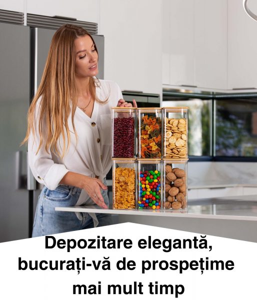 Păstrați-vă bucătăria ordonată cu borcanele noastre practice cu capac din bambus, fie pe tejghea, în dulap, în cămară sau în debara – găsiți ceea ce aveți nevoie dintr-o privire!