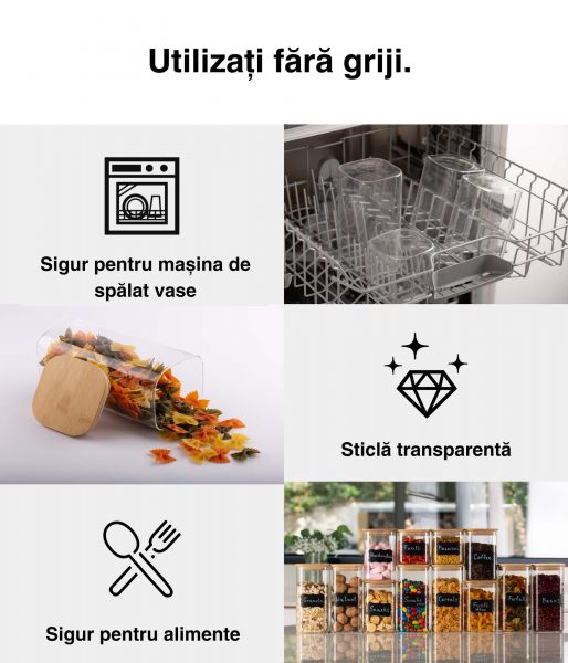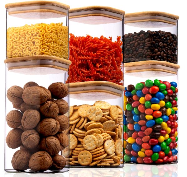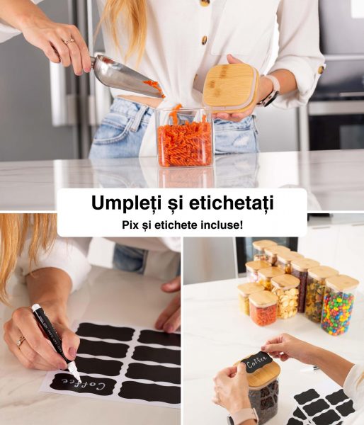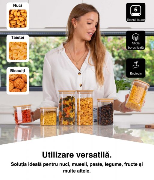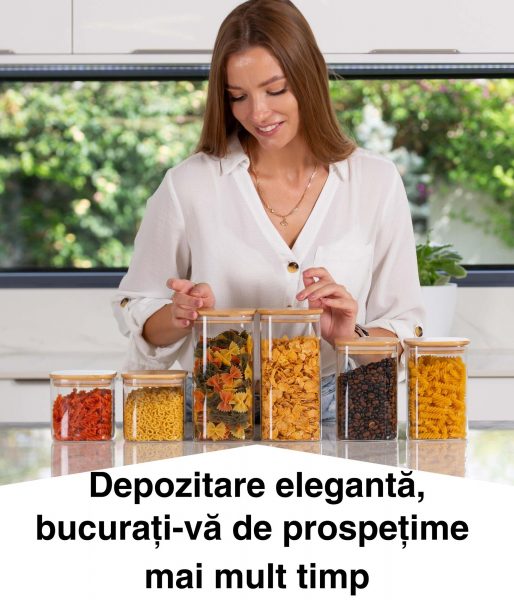 Păstrați-vă bucătăria ordonată cu borcanele noastre practice cu capac din bambus, fie pe tejghea, în dulap, în cămară sau în debara – găsiți ceea ce aveți nevoie dintr-o privire!