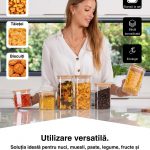 Capacele noastre au o garnitură care închide complet borcanele de depozitare pentru a păstra alimentele proaspete mai mult timp, împiedicând cu succes intrarea în sau ieșirea din borcane a mirosurilor intense.