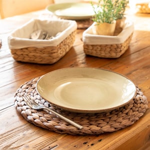 - Datorită aspectului natural al paielor sau al jacintului de apă, aceste seturi de masă sunt potrivite pentru a crea un climat deosebit de primitor și cald în cameră.
