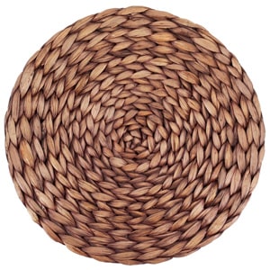 Covoraș rotund, de culoare maro, diametru = 35 cm, grosime = 1 cm, aprox. 220 g împletit din jacint de apă care conține materii prime regenerabile, colorate și totuși naturale