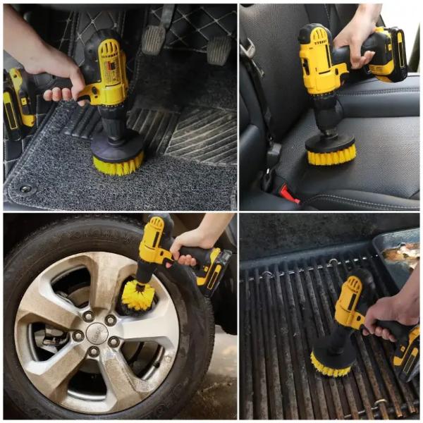 Kitul nostru DRILLBRUSH include o gamă de accesorii de perii de burghiu pentru interiorul și exteriorul mașinii tale. Curățați cu ușurință covoarele, tapițeria, jantele și multe altele. Spuneți adio orelor de curățare manuală.
