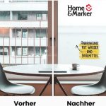 Măsurați fereastra și tăiați folia la dimensiunea dorită. Curățați fereastra/ geamul cu un detergent pentru ferestre: Pentru murdărie grosieră, vă recomandăm o racletă de bucătărie ceramică sau o lamă de ras fereastra/ geamul cu un amestec de apă/strop de clătire (2-3 picături la 500 ml) pulverizare umedă prin picurare: Pentru îndepărtarea foliei protectoare este de preferat apa distilată și, de asemenea, pulverizați folia cu un picurător umed: aplicați două benzi adezive pe ambele părți ale foliei pentru ferestre și desfaceți încet folia pentru ferestre de pe geam. Bulele de apă/aer pot fi presate cu o racletă de la HOME & MARKER®. Tăiați supraînălțările cu un cuțit de tăiat. Uscați fereastra și folia cu o cârpă din microfibre.