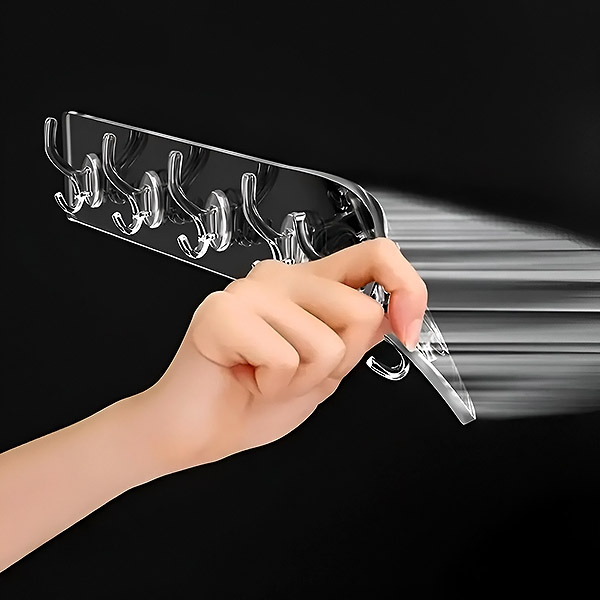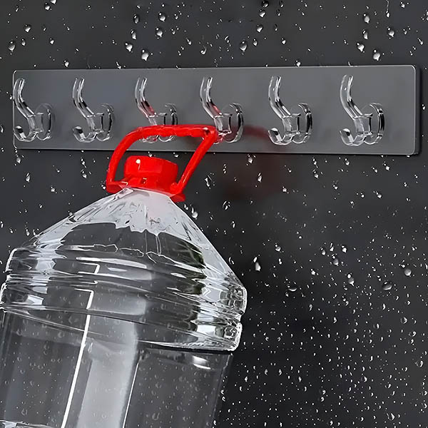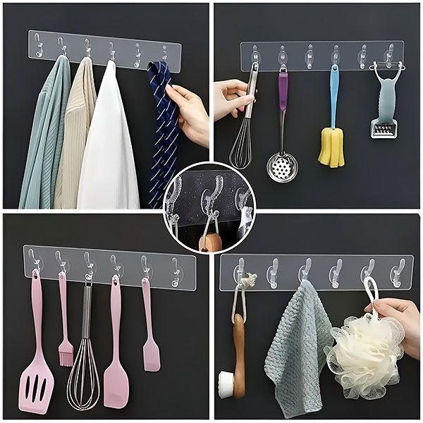 Transformați-vă organizarea casei cu acest suport flexibil autoadeziv. Cu șase cârlige rezistente, este perfect pentru a ține unelte de bucătărie, accesorii de baie, îmbrăcăminte și multe altele.