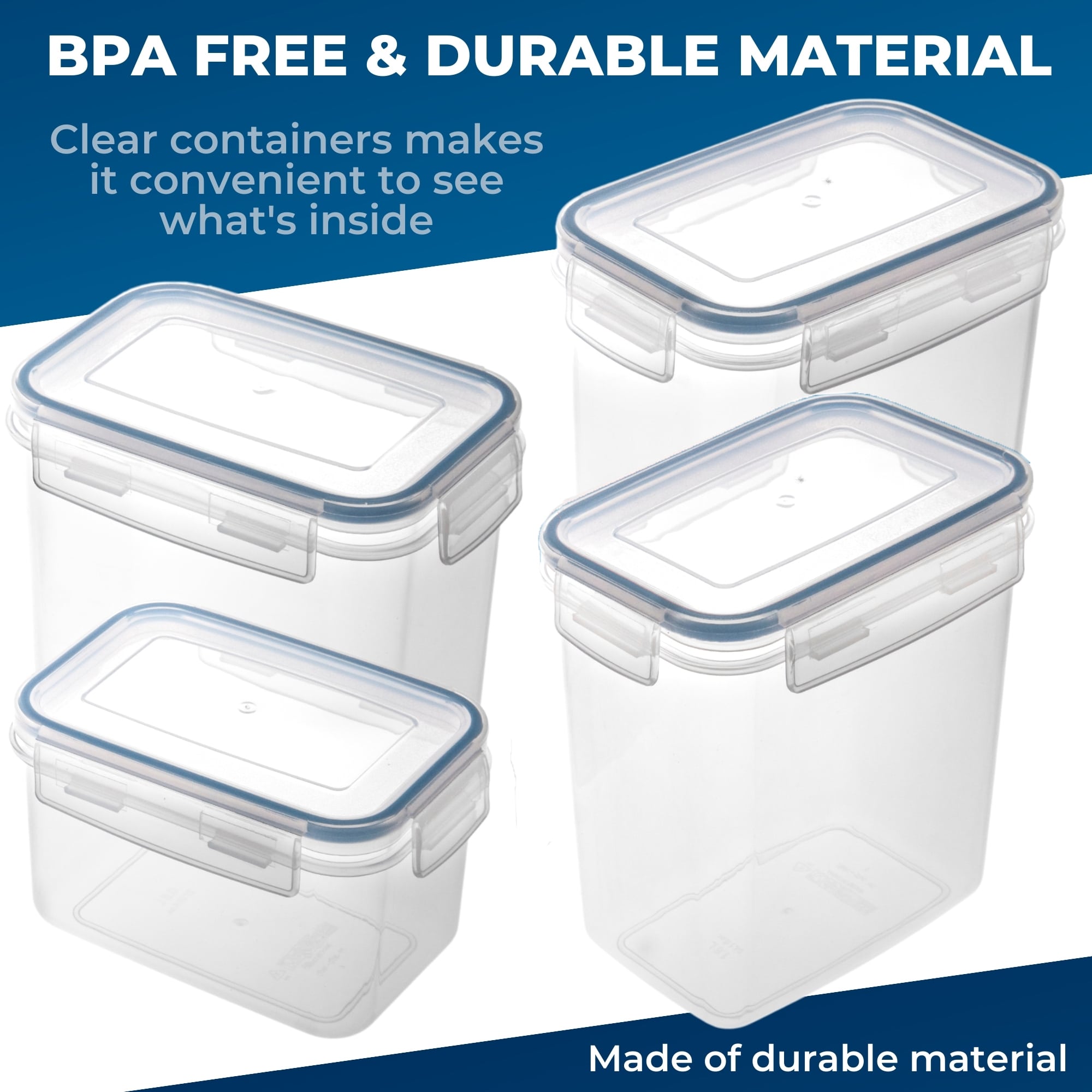 Containerele noastre reutilizabile pentru depozitarea alimentelor sunt fabricate în conformitate cu măsuri de siguranță și standarde de calitate stricte, de top în industrie. De exemplu, acestea nu conțin BPA și sunt potrivite pentru toate tipurile de alimente și ingrediente.