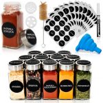 PENTRU ORGANIZARE OPTIMĂ – Cu 12 borcane de condimente din sticlă, expuneți-vă cu mândrie condimentele și ierburile într-un mod elegant și coerent. De asemenea, puteți plasa borcanele pe suportul nostru pentru condimente din 2 piese.