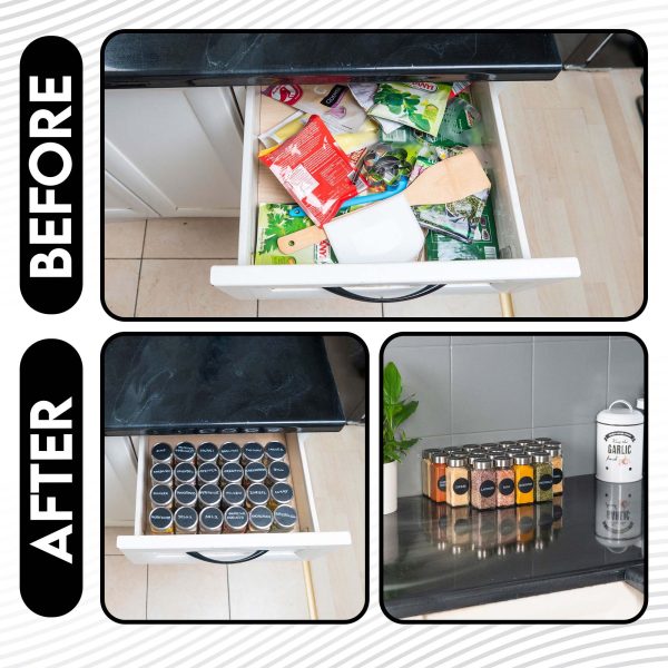 ✔ NU DOAR PENTRU CONDIMENTE ȘI BUCĂTĂRIE – Acest set de depozitare a condimentelor poate fi folosit și pentru a depozita produse de casă, decorațiuni și vitamine! Iar cu peria inclusă, veți curăța cu ușurință borcanele.