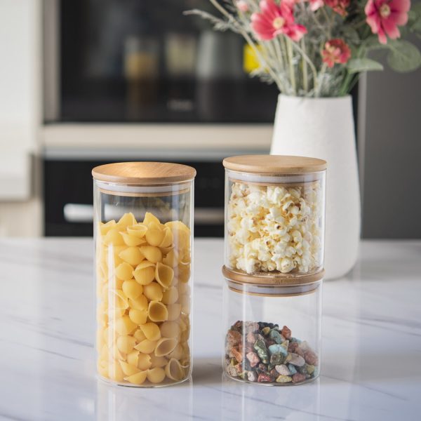 CEA MAI BUNĂ ORGANIZARE – Păstrați-vă bucătăria ordonată cu borcanele noastre practice cu capac din bambus, fie pe tejghea, în dulap, în cămară sau în debara – găsiți ceea ce aveți nevoie dintr-o privire!
