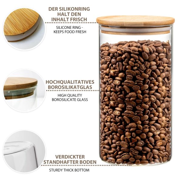 ✅ SIGURE PENTRU ALIMENTE, FĂRĂ TOXINE – Borcanele noastre din sticlă cu capace din bambus sunt fabricate din sticlă borosilicată rezistentă; capacele sunt confecționate din bambus ecologic. Niciun material nu conține BPA sau plumb.