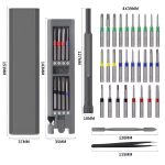 Include 28 de vârfuri de precizie, 1 șurubelniță, pensetă și o bară de desfacere.
