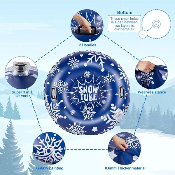 Cu colacul pentru zăpadă, vă puteți bucura de săniuș continuu pe toată durata zilei! Complet sigur și comod de transportat, este o alegere ideală pentru ieșirile în familie sau pentru escapadele la schi.