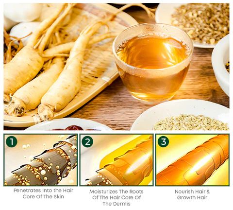 Se crede căginsengul coreean crește numărul de celule papilare dermice din scalp, împiedicând moartea lor celulară naturală. De asemenea, stimulează scalpul și încurajează creșterea părului.