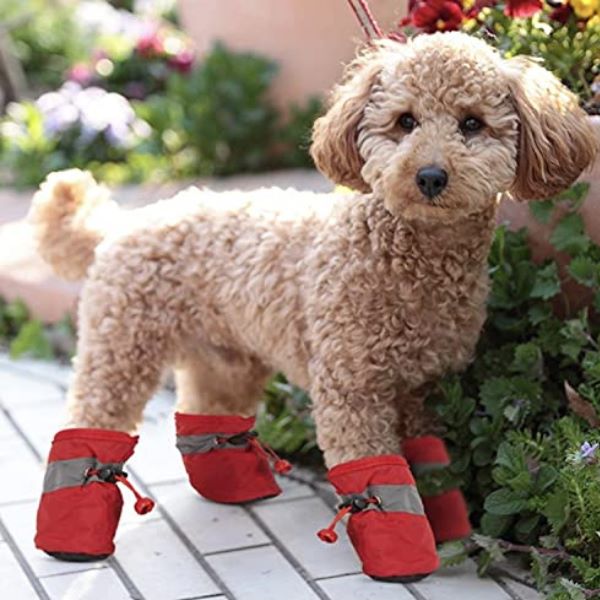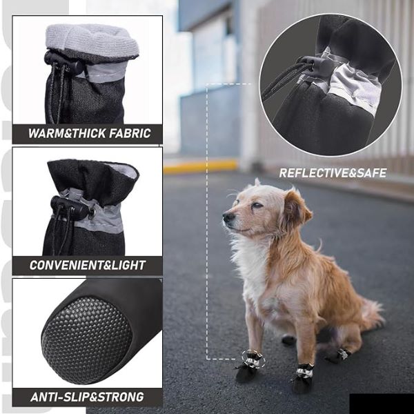 📦 Pachetul Include: 4x Încălțăminte rezistentă la apă pentru animale de companie (disponibili în roșu sau negru)